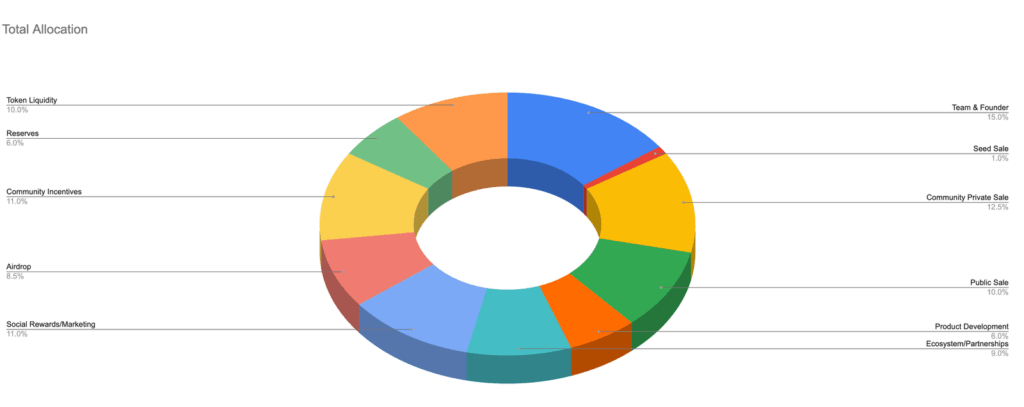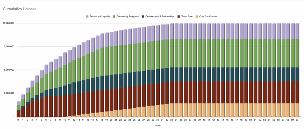 9 % (900.000) zur Stärkung des Ecosystems und zum Eingehen von Partnerschaften, monatlich über 18 Monate freigegeben (TGE 10 %).
